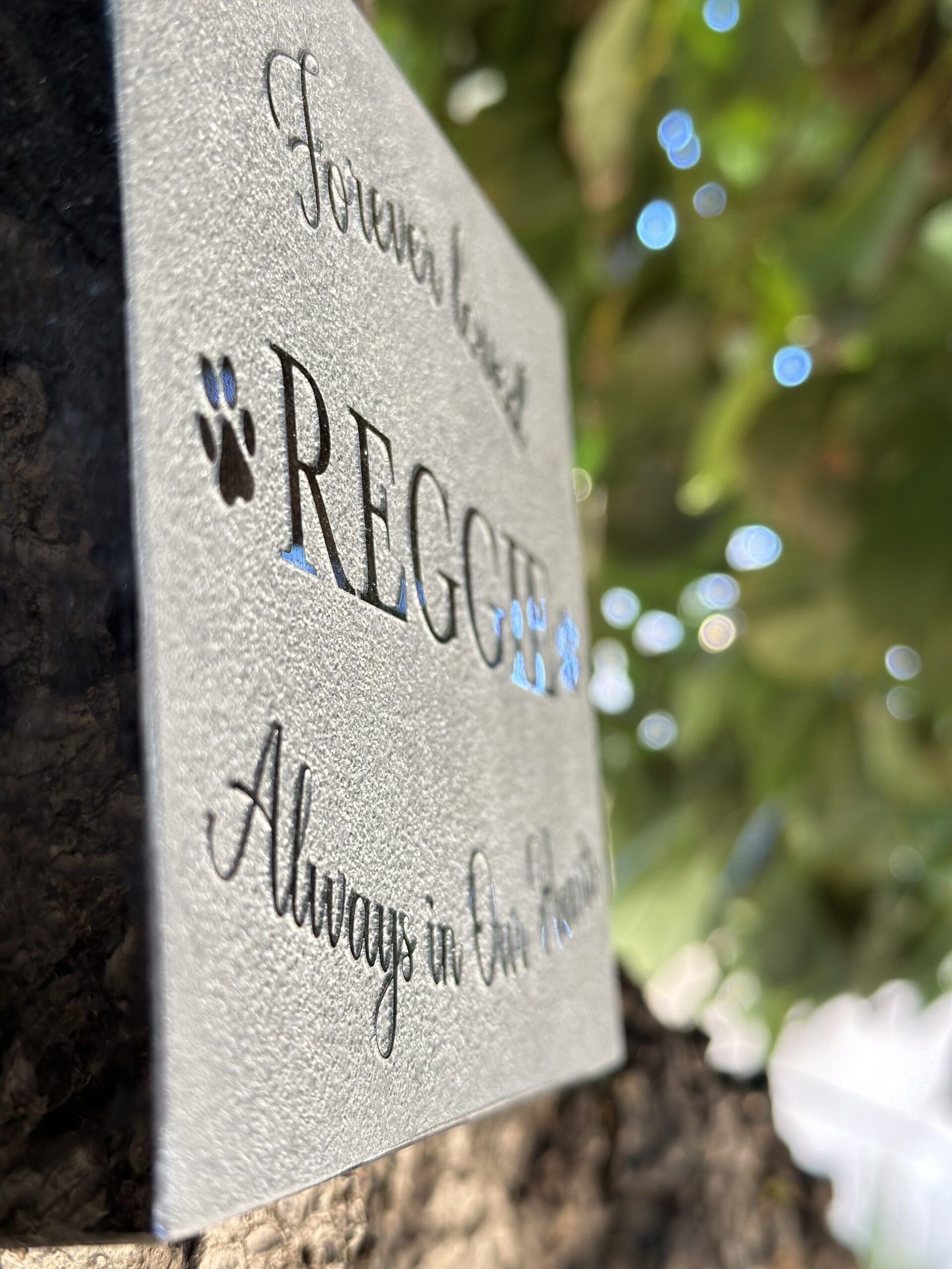 MyFureverMemories.com is renowned in the pet industry for maintaining the same high quality and standards as those in the monument industry. By choosing MyFureverMemories.com, you are selecting memorials crafted by Vidal and Adda, who have over seven years of experience creating memorial plaques. They can personally design a unique memorial just for you—simply let them know when you place your order that you would like a custom design.