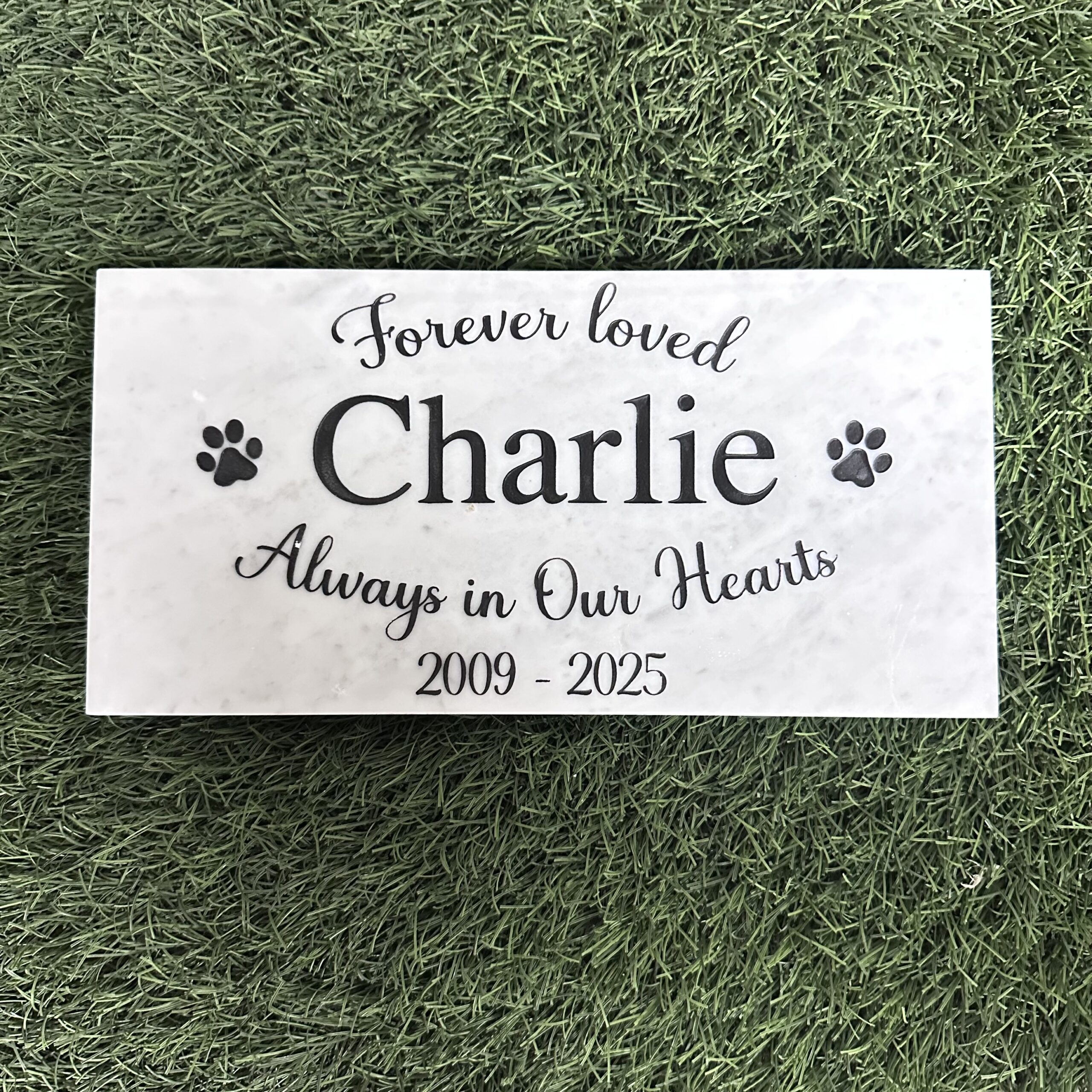 MyFureverMemories.com is renowned in the pet industry for maintaining the same high quality and standards as those in the monument industry. By choosing MyFureverMemories.com, you are selecting memorials crafted by Vidal and Adda, who have over seven years of experience creating memorial plaques. They can personally design a unique memorial just for you—simply let them know when you place your order that you would like a custom design.